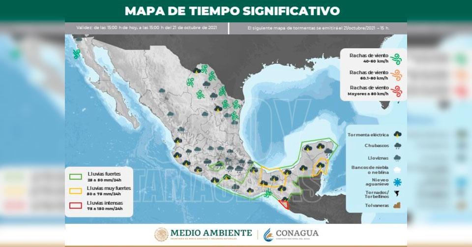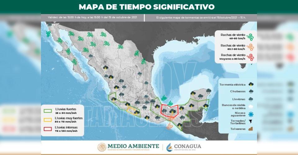 Se esperan lluvias fuertes Chiapas, Guerrero, Michoacán, Oaxaca y Quintana Roo