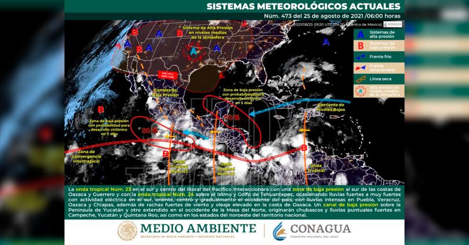 Lluvias intensas y muy fuertes en 6 estados del país: Conagua
