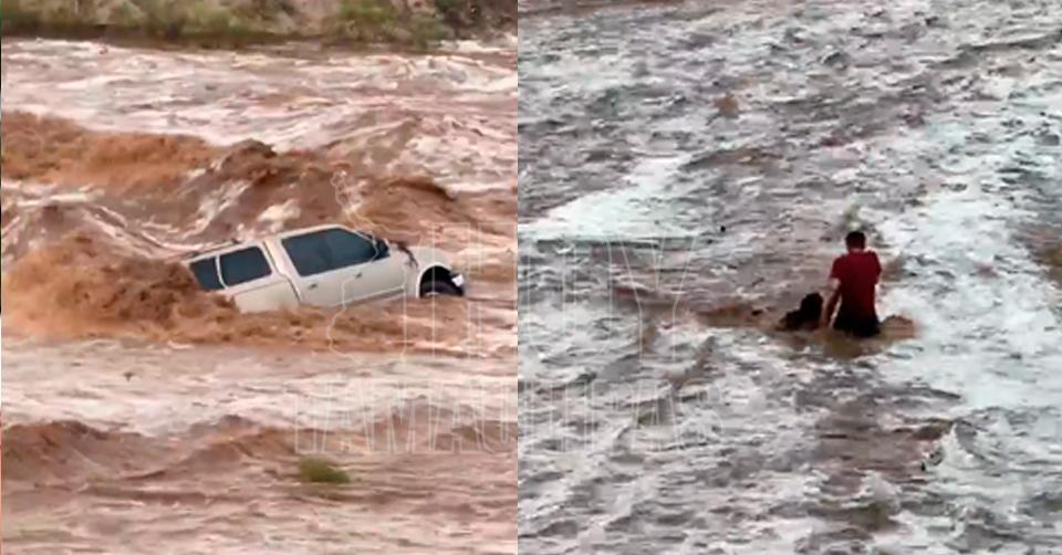 VÍDEO: Rescatan a mujer de morir ahogada en desbordamiento de arroyo en Baja California Sur