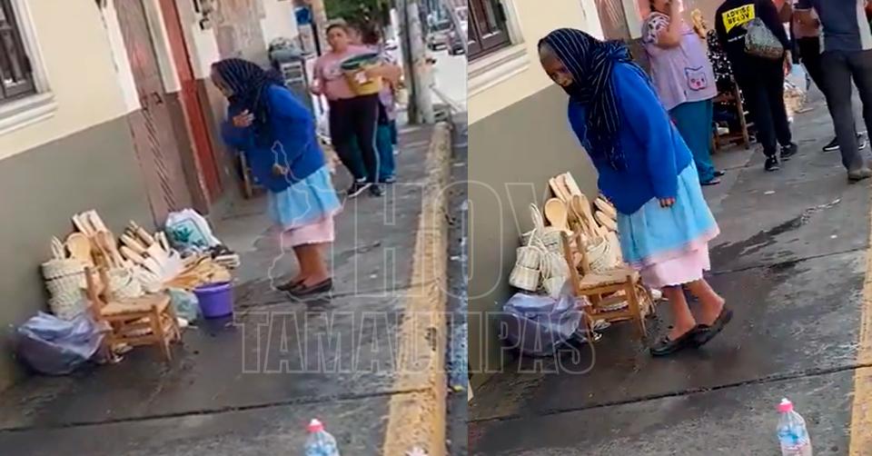 VÍDEO: Le avientan agua a ancianita que vendía sus artesanías en la calle en Michoacán