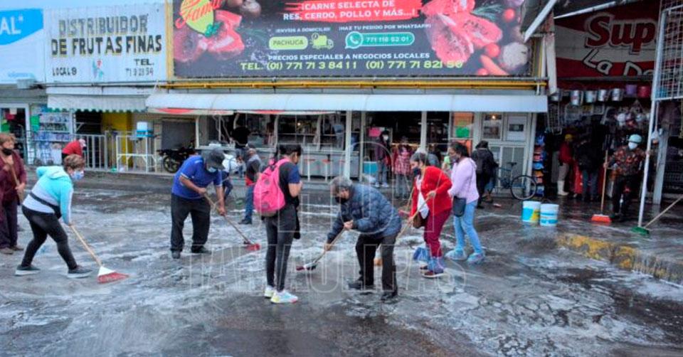 Desinfectan la Central de Abastos de Pachuca; piden locatarios controlar el ingreso