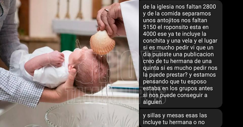 Le pide a su amiga que pague el bautizo de su hija pero sin ir a la fiesta; la “quema” en redes y se hace viral