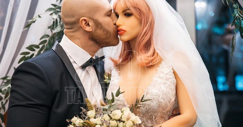 Fisicoculturista se casa con una muñeca inflable, es el "amor de su vida"