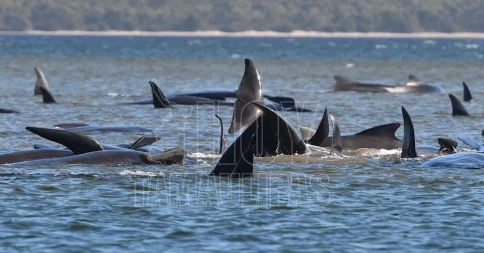 Mueren 90 ballenas varadas en bahía de Australia, hay 250 más atrapadas