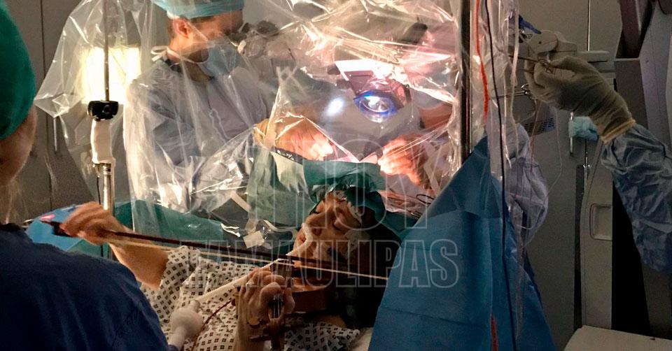 Toca el violín mientras la operan de tumor cerebral