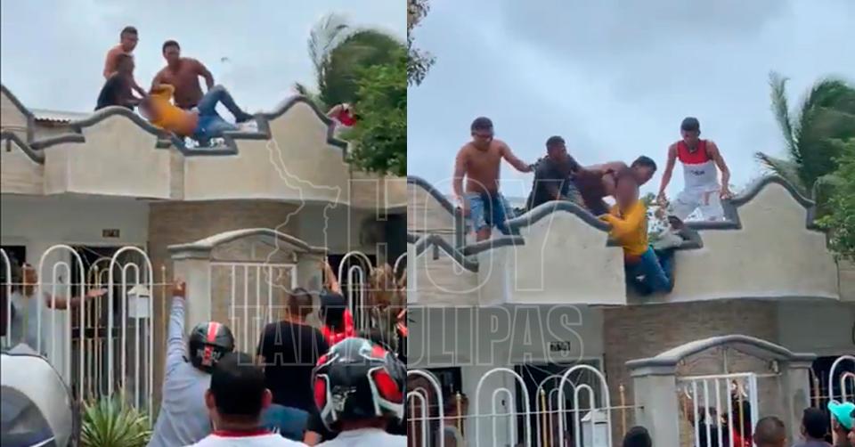 VÍDEO: “Tíralo”; vecinos lanzan a ladrón desde el techo de una casa