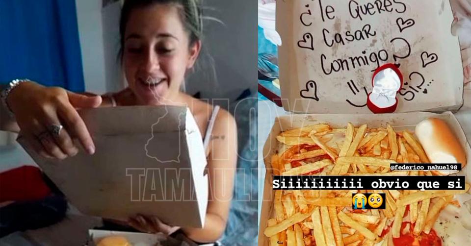 Joven le pide matrimonio a su novia con caja de papas fritas y conmueven en redes