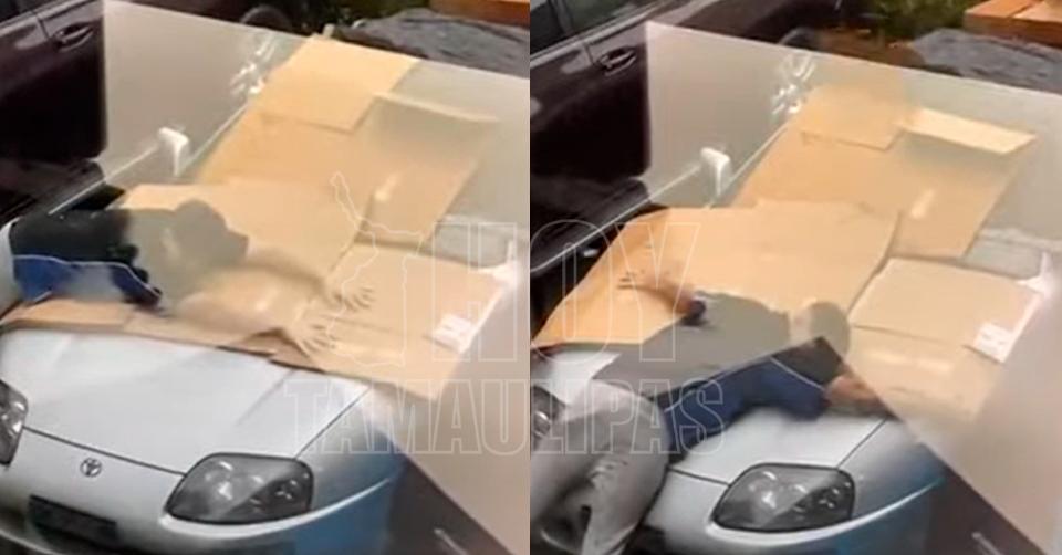 VÍDEO: Durante granizada joven protegió su auto deportivo con su cuerpo