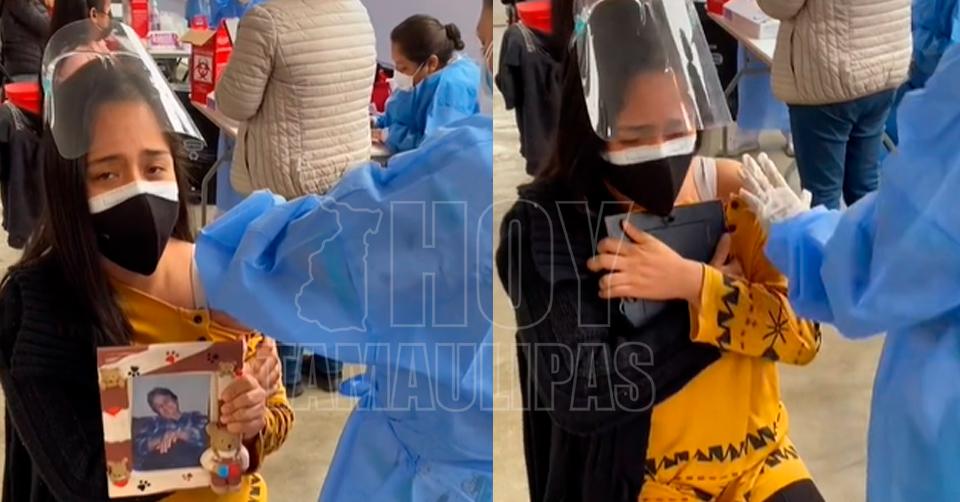 VÍDEO: Al recibir la vacuna joven rompe en llanto, lleva foto de su abuelita que murió por Covid-19