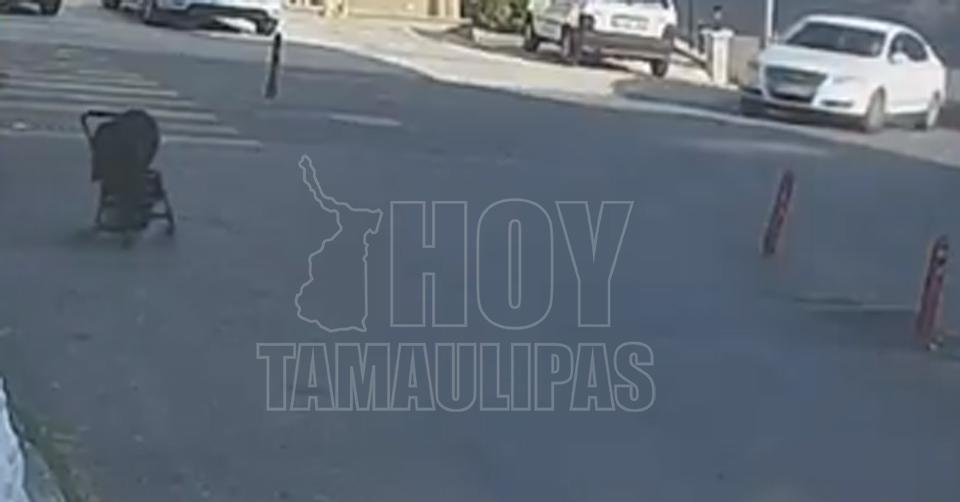 Bebé en una carriola se salva de ser atropellado por un auto