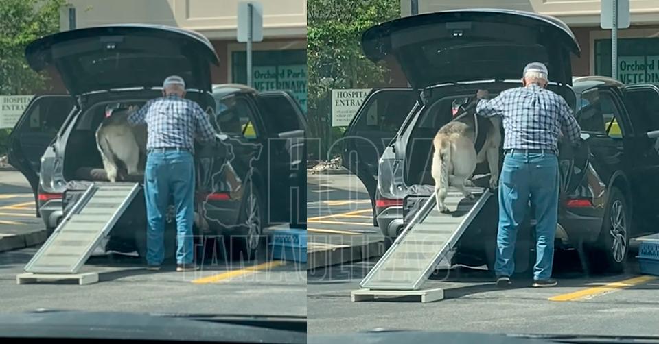 VÍDEO: Abuelito construye una rampa para ayudarle a su perro a subir al carro