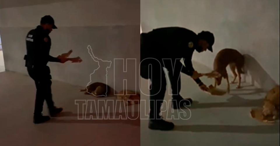 VÍDEO: Durante rondín policía alimenta a 3 perritos callejeros que se protegían del frío; se hace viral