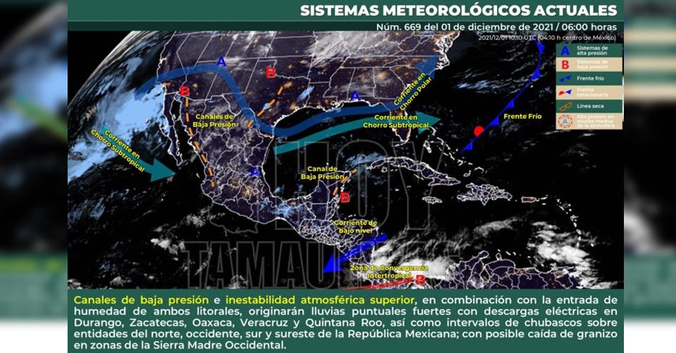 Lluvias fuertes en regiones de Durango, Oaxaca, Quintana Roo, Veracruz y Zacatecas
