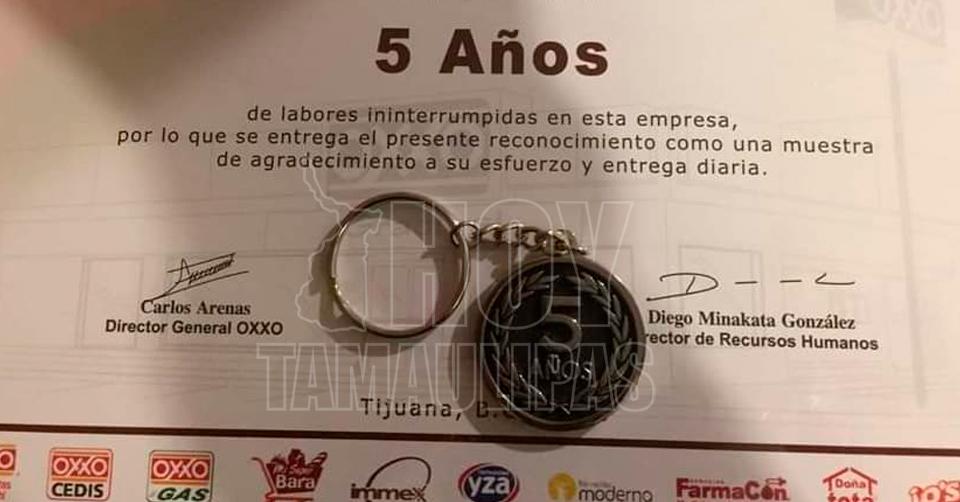 Empresa le regala un llavero como reconocimiento por 5 años trabajando
