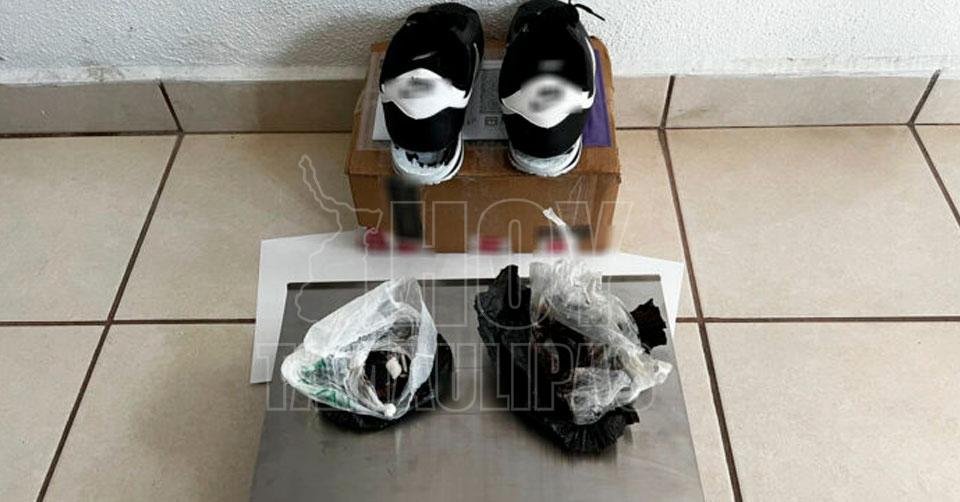 Aseguran heroína escondida en suelas de tenis que tenían como destino EU