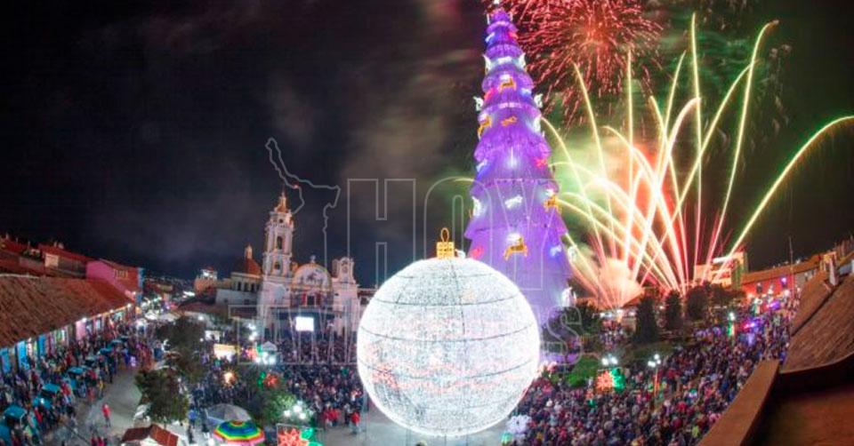 Pueblo Mágico de Chignahuapan enciende árbol de Navidad de 12 metros de alto