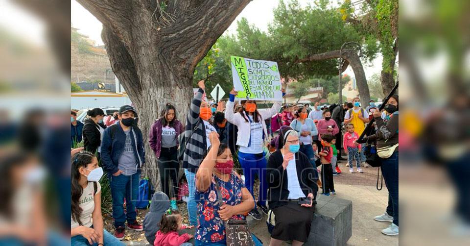 Migrantes se manifiestan frente a garita de Nogales, Sonora