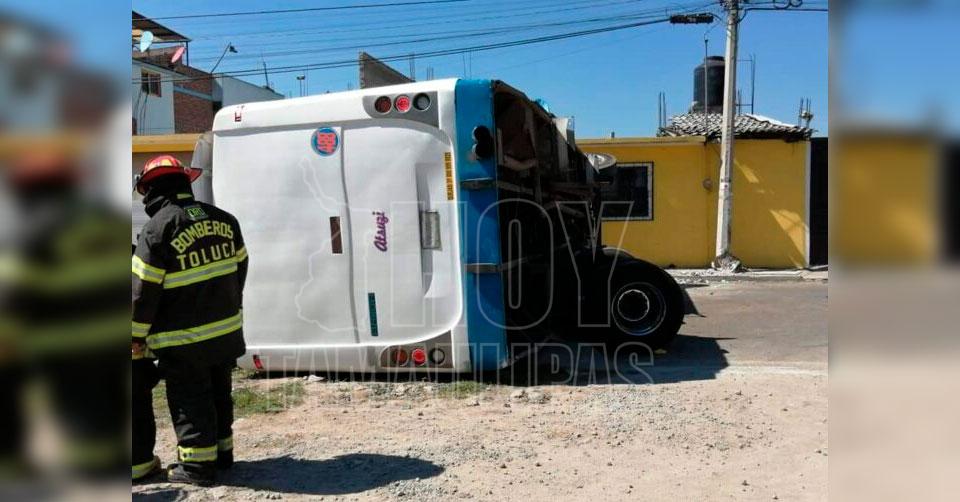 Ocho pasajeros lesionados por volcadura de camión de pasajeros en Toluca