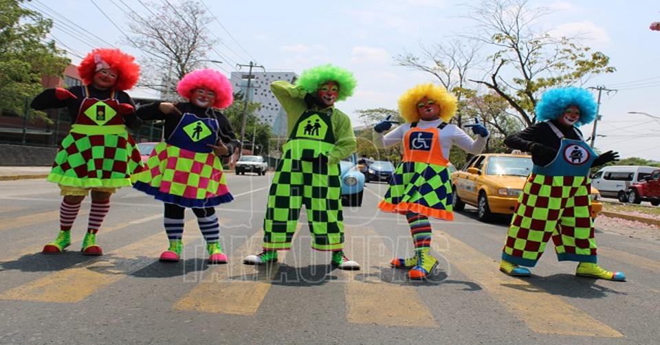 Payasos dirigen tráfico vehicular en Villahermosa