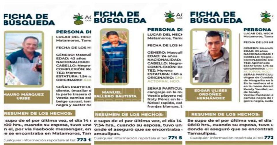 Buscan a tres hidalguenses desaparecidos en Tamaulipas