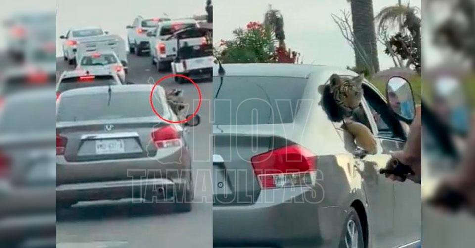 Pasean a tigre en Mazatlán, Sinaloa
