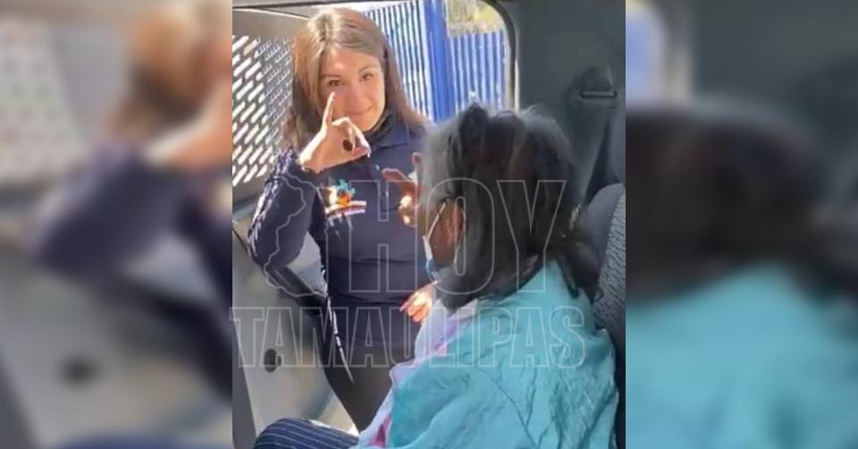 Policía explica proceso de vacunación con lenguaje de señas a una abuelita