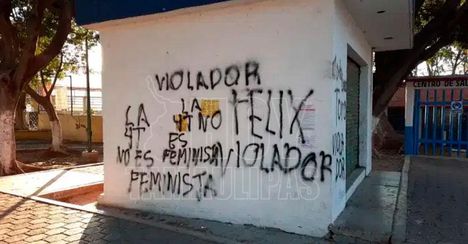 Feministas dejan pintas de protesta contra el candidato de Morena a la gubernatura