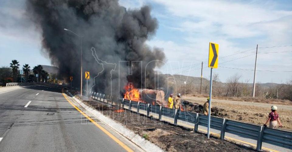 Restablecen tráfico, tras volcadura e incendio de pipa en Carretera Nacional