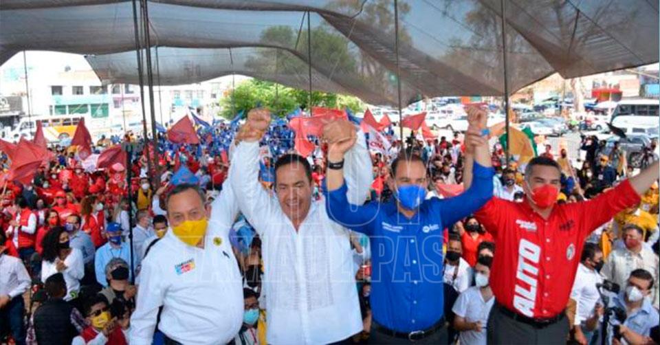 Dirigentes nacionales del PRI, PAN y PRD toman protesta a candidato a gobernador de Michoacán