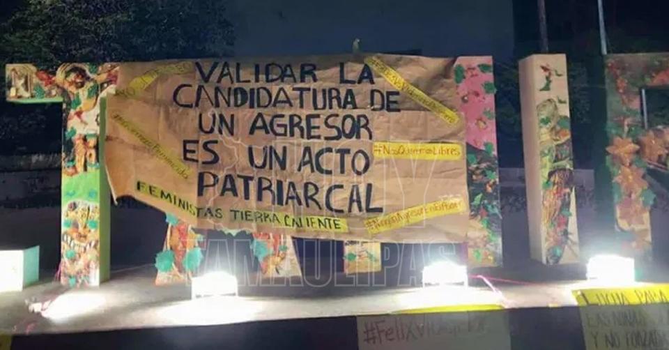 Colocan feministas mensajes contra la candidatura de Félix Salgado en Ciudad Altamirano
