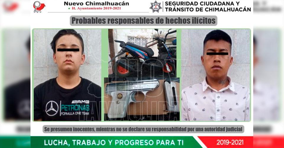 Policías de Chimalhuacán capturan a dos por robo de motocicleta con arma de fuego