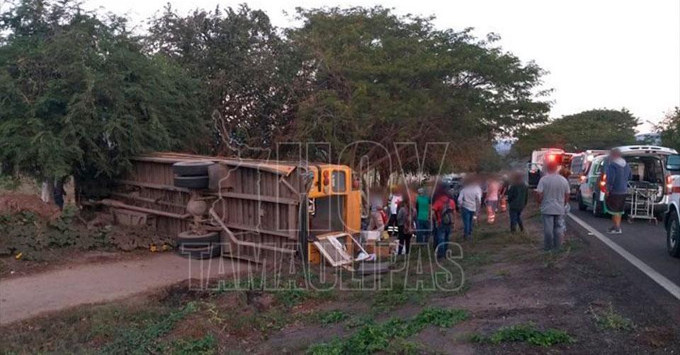 Volcadura de autobús deja 18 jornaleros lesionados en Colima