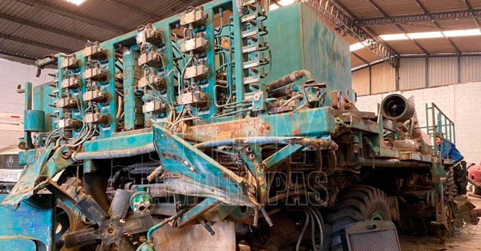 Rescatan de la chatarra máquina asfaltadora en Ecatepec