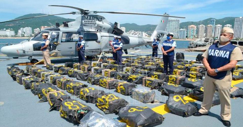 Aseguran en altamar cargamento con 95 bultos de cocaína