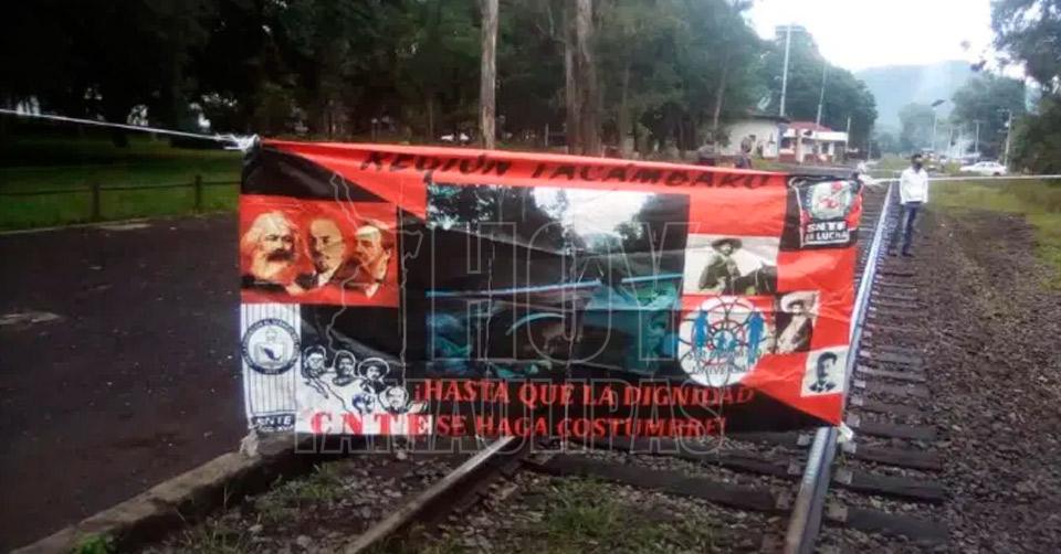 Maestros y normalistas bloquean vías del tren y avenidas en Michoacán