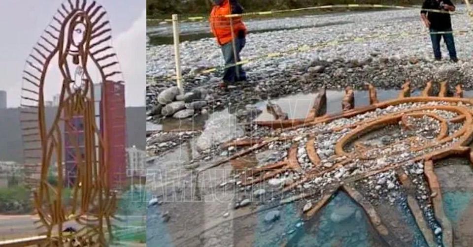 Rescatará Monterrey escultura de virgen que lluvias de “Hanna” ponen al descubierto