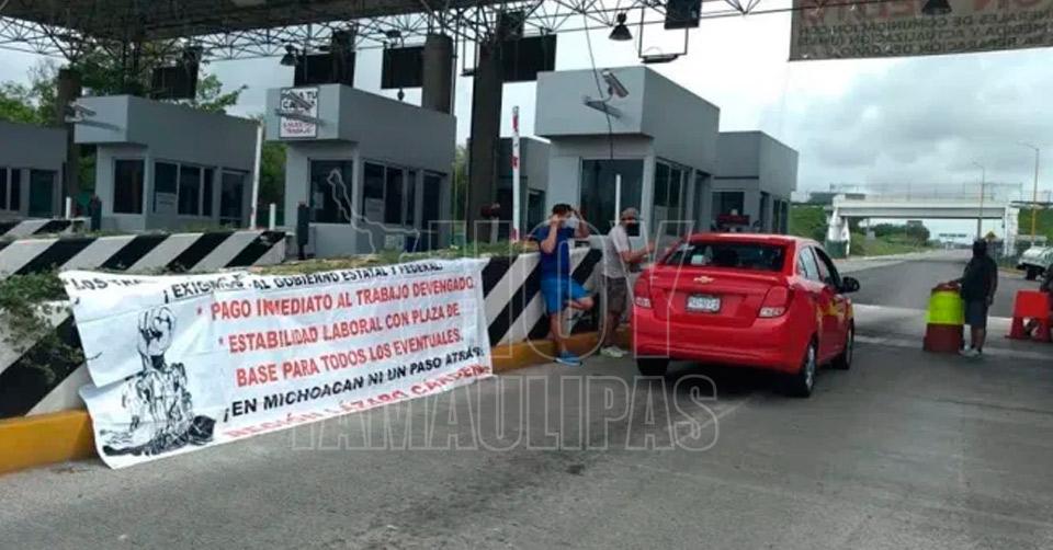 Se manifiestan maestros en casetas de peaje en Michoacán