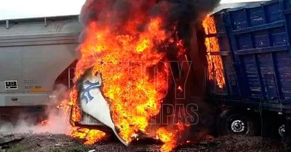 Tráiler intenta ganarle paso al tren y provoca incendio de vagones en Tlaxcala