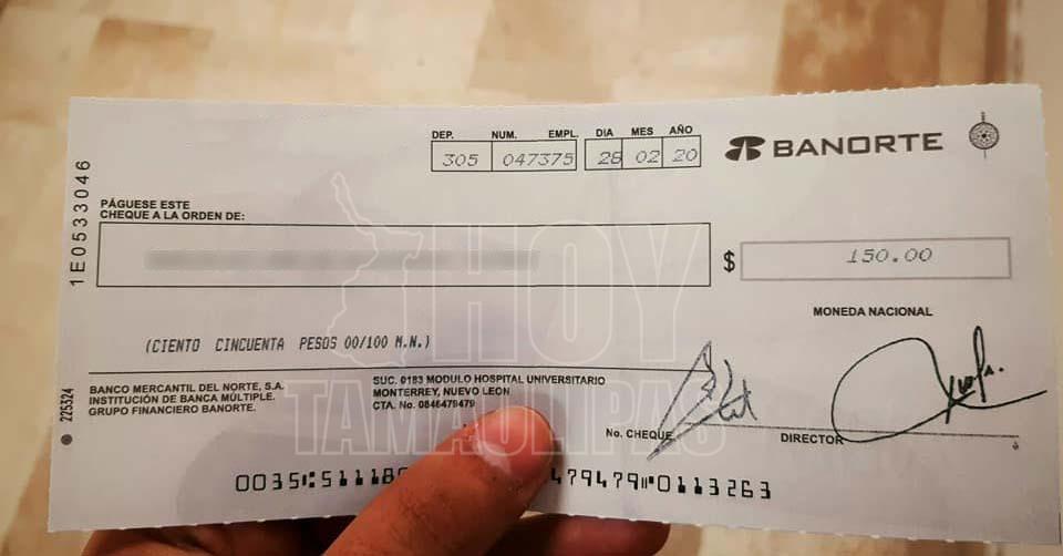Se queja estudiante en Monterrey, le llega cheque de la Federación por 150 pesos
