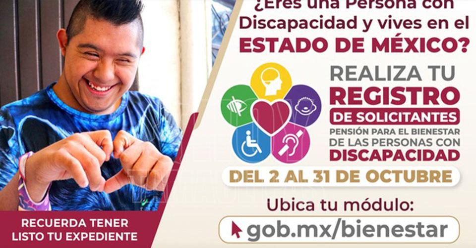 Del 2 al 31 de octubre, registro a Pensión Universal de las Personas con Discapacidad en Estado de México