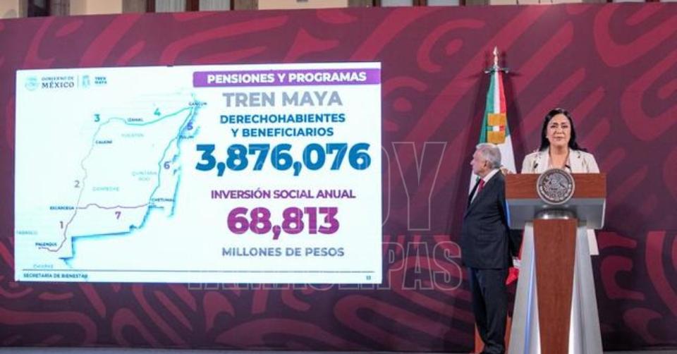 Pensiones y Programas para el Bienestar en la ruta del Tren Maya benefician a 3.9 millones