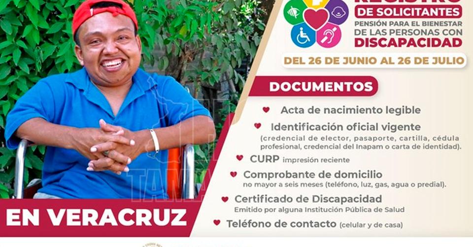 Veracruz: del 26 de junio al 26 de julio, registro a la Pensión Universal de Personas con Discapacidad