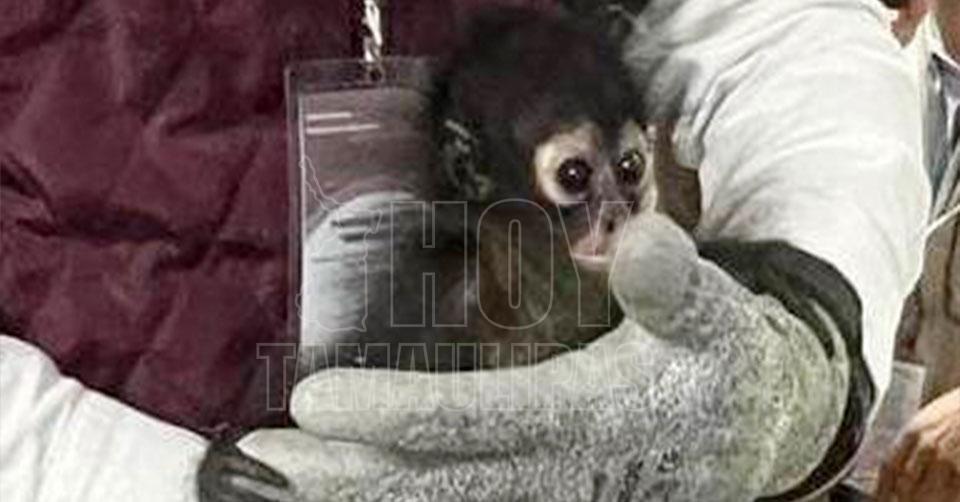 Aseguran animales exóticos en domicilio de Morelia; una cría de mono araña se encuentra delicado