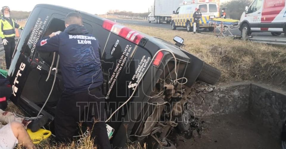 Mueren 12 al volcar camioneta en tramo León-Aguascalientes, municipio de Lagos de Moreno