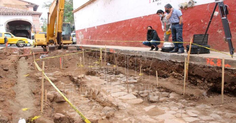 Localizan posibles vestigios arqueológicos al arreglar drenaje en centro de Pátzcuaro