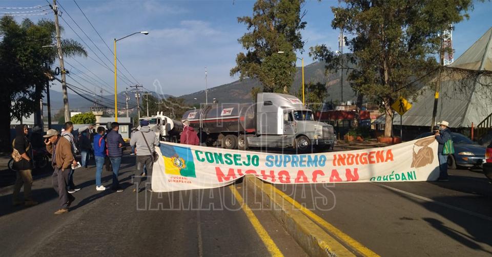 En demanda de atención, indígenas en Michoacán bloquean cinco carreteras federales
