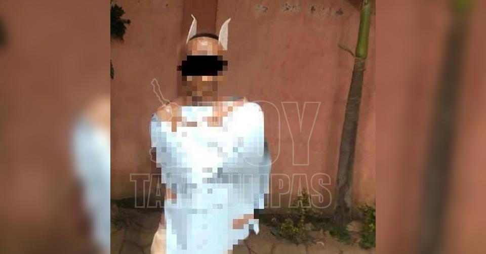 Amarran a hombre y lo disfrazan de ratón en avenida principal de municipio en Michoacán
