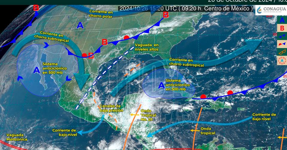 Se prevén lluvias puntuales fuertes en Guerrero, Oaxaca, Chiapas, Tabasco y Quintana Roo