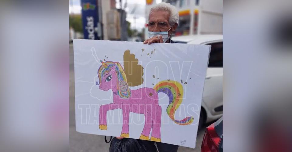 Abuelito vende los dibujos de sus nietas huérfanas en Guanajuato