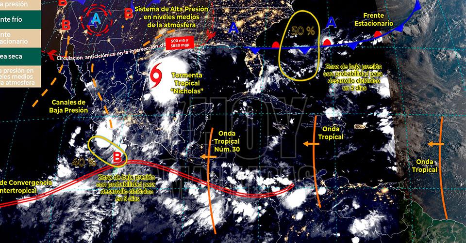 Como tormenta tropical Nicholas, dejará lluvias intensas en Chiapas, Tabasco, Tamaulipas y Veracruz